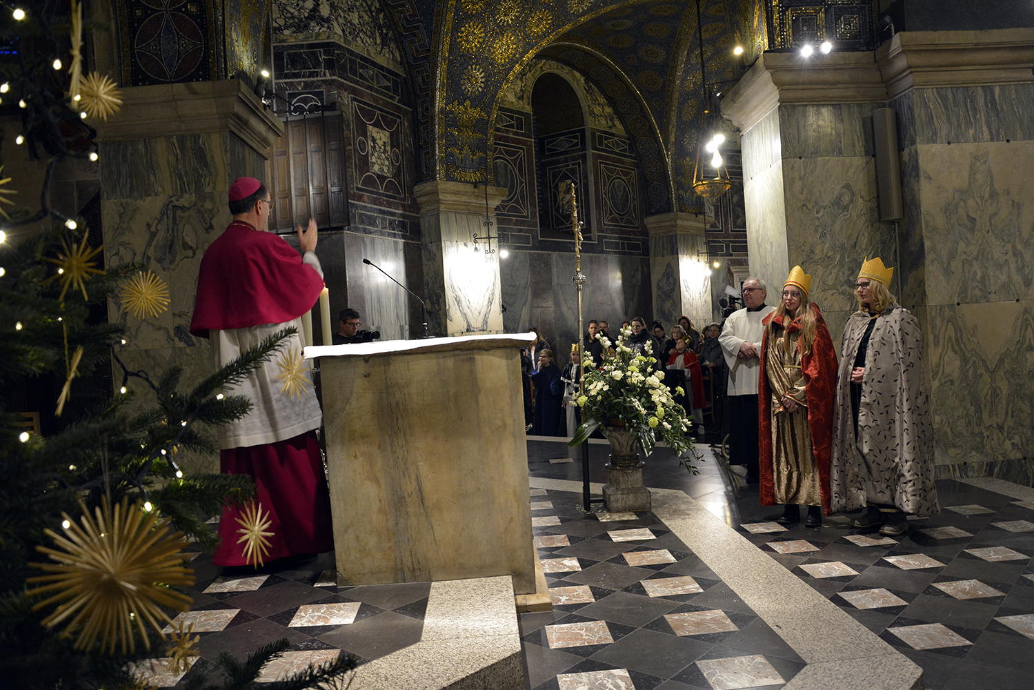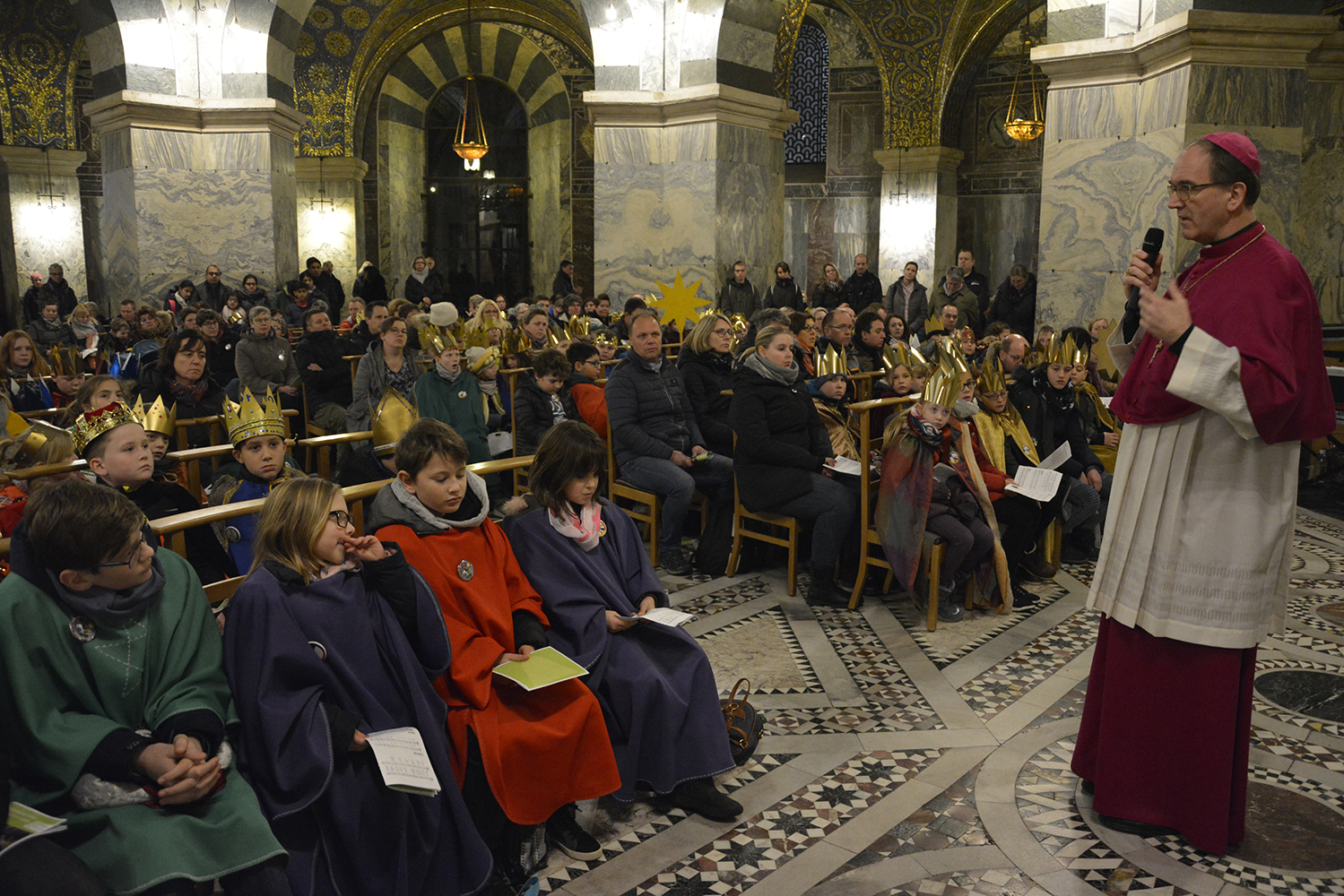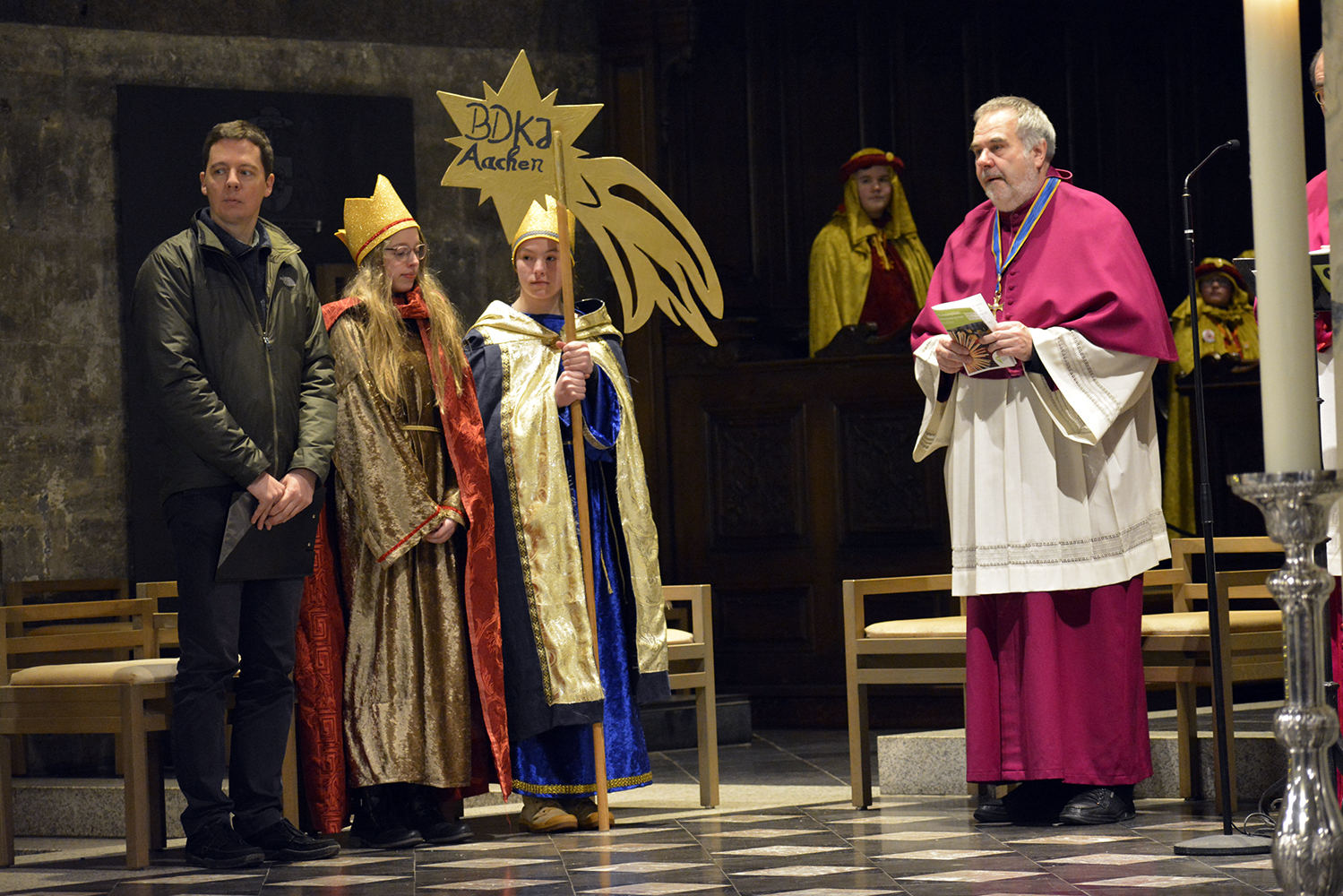 Aachen, 27. Dezember. Etwa vierhundert Königinnen und Könige haben sich heute im Aachener Dom zum bistumsweiten Aussendungsgottesdienst versammelt. Die Sternsingerinnen und Sternsinger werden in den Tagen zwischen den Jahren von Tür zu Tür gehen, um Spenden zu sammeln. Das Motto der diesjährigen Aktion Dreikönigssingen 2019/2020 lautet: „Frieden. Im Libanon und weltweit!“