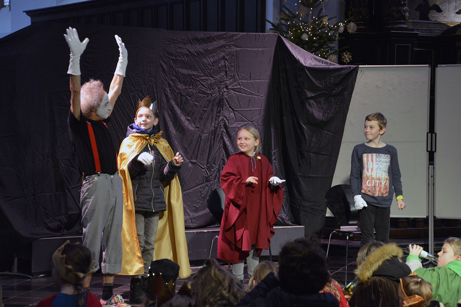 Nach dem Gottesdienst, der den Kindern das Motto der diesjährigen Aktion näherbrachte, lud der BDKJ in Aachen, der gemeinsam mit dem Kindermissionswerk Träger der Aktion Dreikönigssingen ist, die Sternsingerinnen und Sternsinger zu einem Programm mit dem Aachener Pantomime-Künstler Scheibub in die Citykirche St. Nikolaus ein.