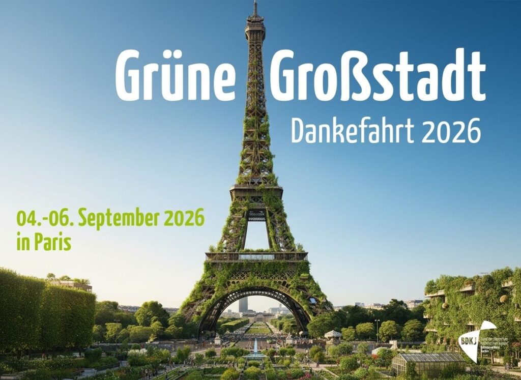 Für euer Engagement beim BDKJ und seinen Verbänden möchten wir uns auch 2026 wieder mit einer Dankefahrt erkenntlich zeigen. Zusammen mit euch wollen wir am Wochenende vom 04. bis 06. September die Hauptstadt Frankreichs entdecken: Paris! Das Motto „Grüne Großstadt“.