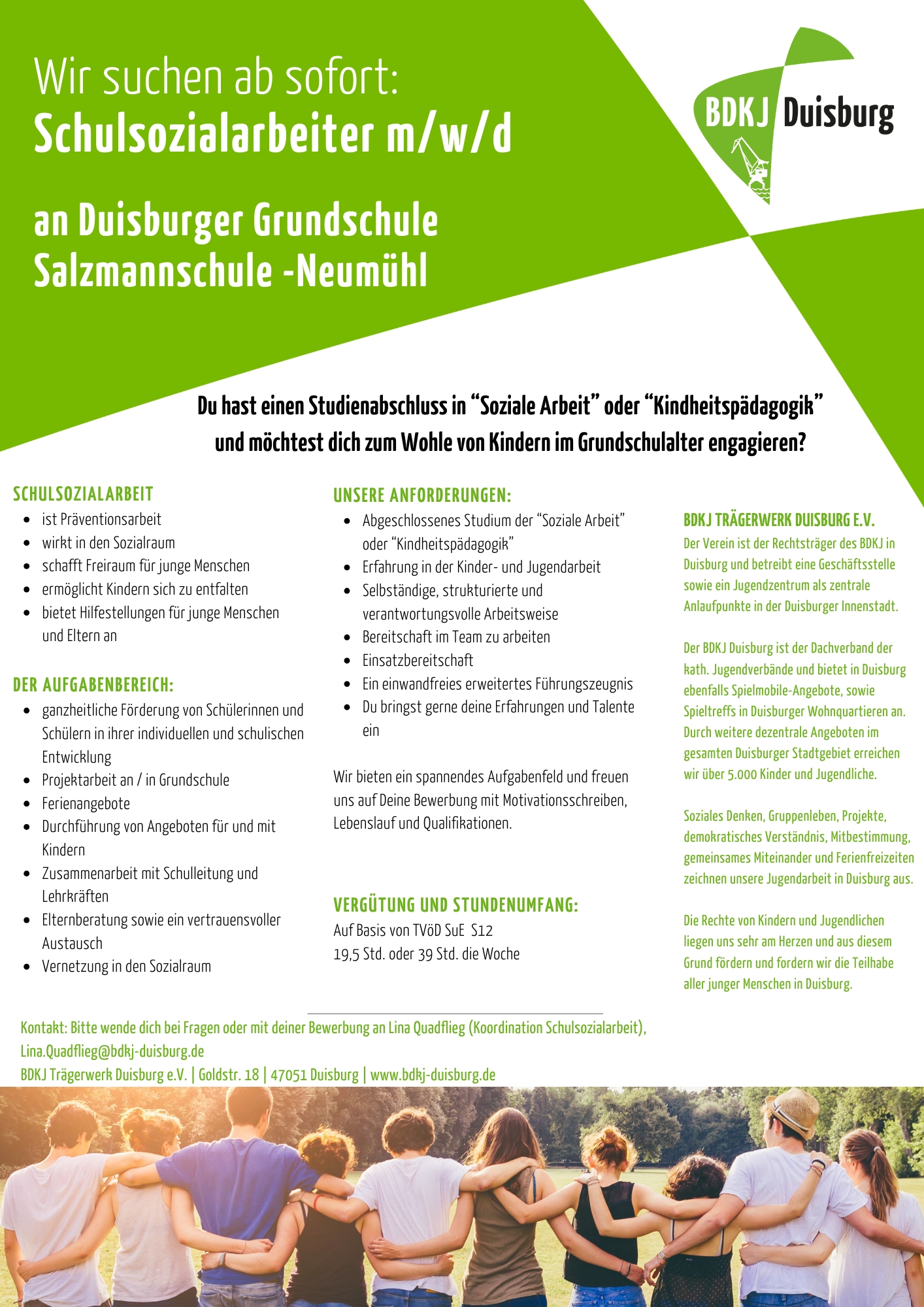 Schulsozialarbeiter m/w/d an Duisburger Grundschule Salzmannschule-Neumühl